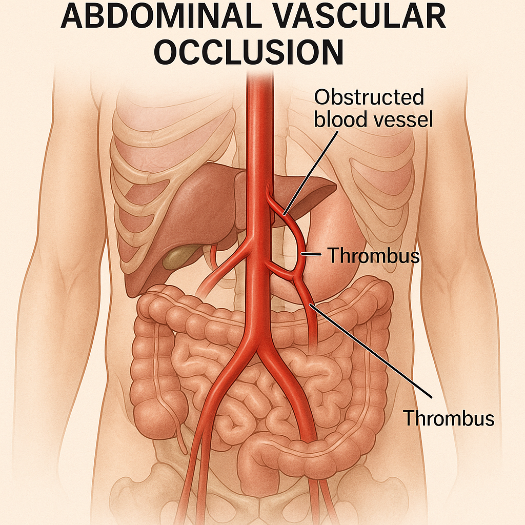 **복부 혈관 폐색(Abdominal Vascular Occlusion)**은 복부 주요 혈관(대동맥, 장간막 동맥 등)이 혈전, 색전, 또는 외부 압박으로 인해 폐색되어 혈류가 차단되는 상태입니다.