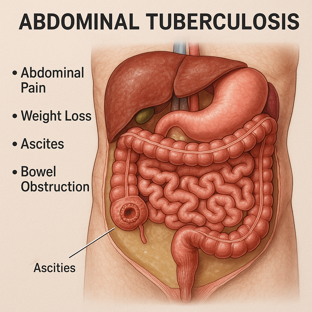 복부 결핵(Abdominal Tuberculosis)은 결핵균(Mycobacterium tuberculosis)이 폐 외부, 특히 복강 내 장기(복막, 장, 간, 림프절 등)를 침범하여 발생하는 폐외결핵의 한 유형입니다. 주로 장결핵, 복막결핵, 장간막 림프절 결핵 형태로 나타나며, 결핵 발병률이 높은 국가에서는 간과되기 쉬운 질환입니다.