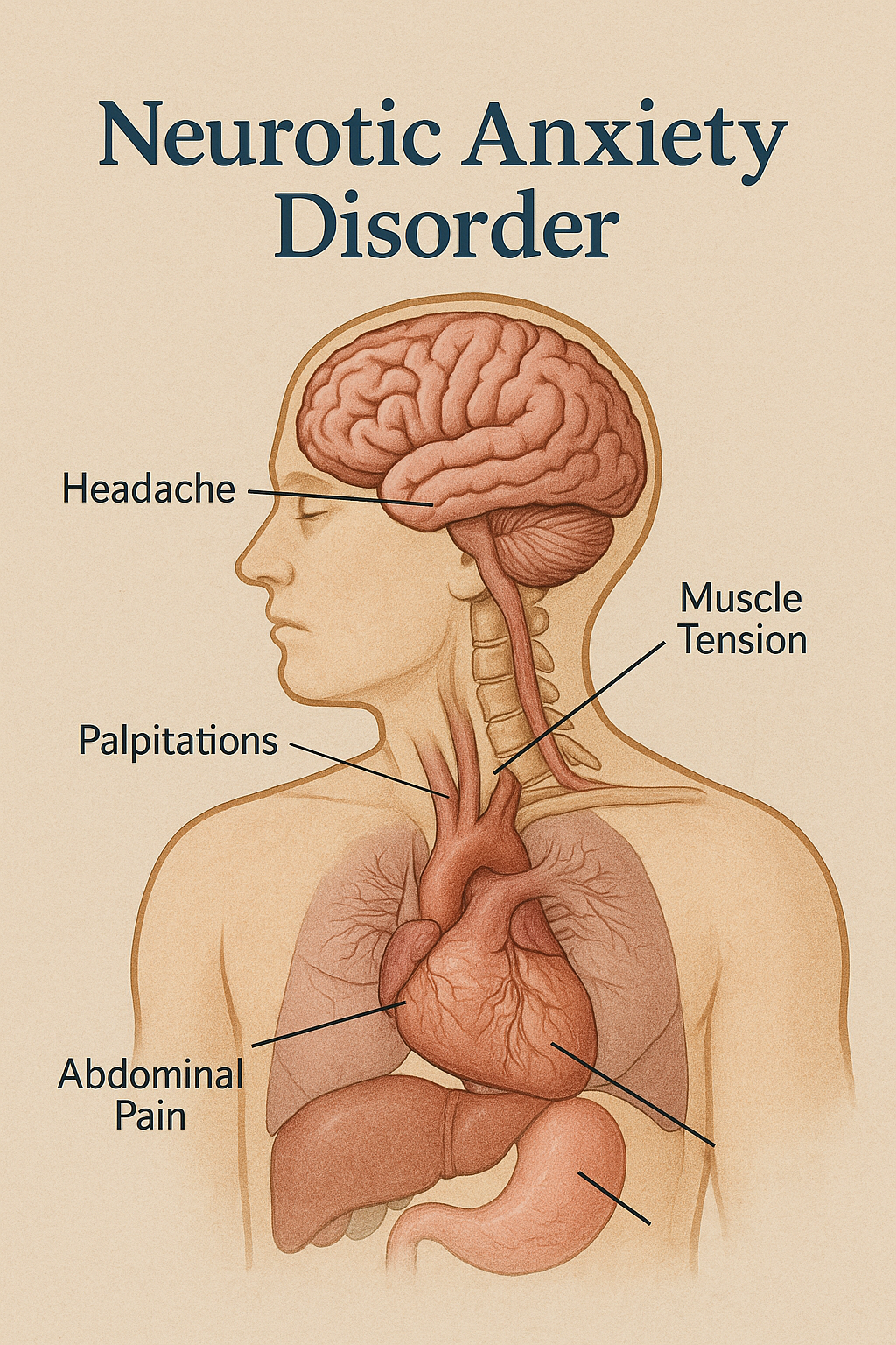 신경증적 불안장애(Neurotic Anxiety Disorder)는 실질적인 위협이 없음에도 지속적이고 과도한 불안, 긴장, 걱정이 반복적으로 나타나는 정신적 상태입니다. 과거에는 ‘신경증(Neurosis)’의 일종으로 분류되었으며, 현재는 범불안장애(GAD), 공황장애, 사회불안장애 등과 유사하게 여겨지기도 합니다. 주로 심리적 스트레스와 관련되며, 신체적 증상을 동반하는 경우가 많습니다.