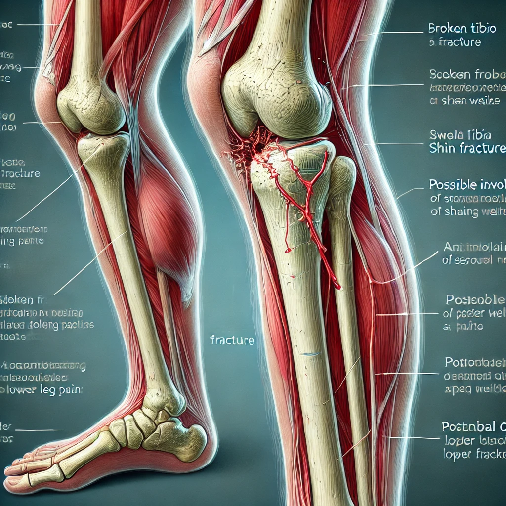 경골 골절(Tibia Fracture)은 정강이뼈(경골, Tibia)가 부러지는 골절로, 다리의 주요 지지 뼈이기 때문에 강한 충격이나 외상에 의해 발생합니다. 교통사고, 스포츠 손상, 낙상 등에서 흔히 발생하며, 종종 비골 골절과 함께 동반될 수 있습니다.