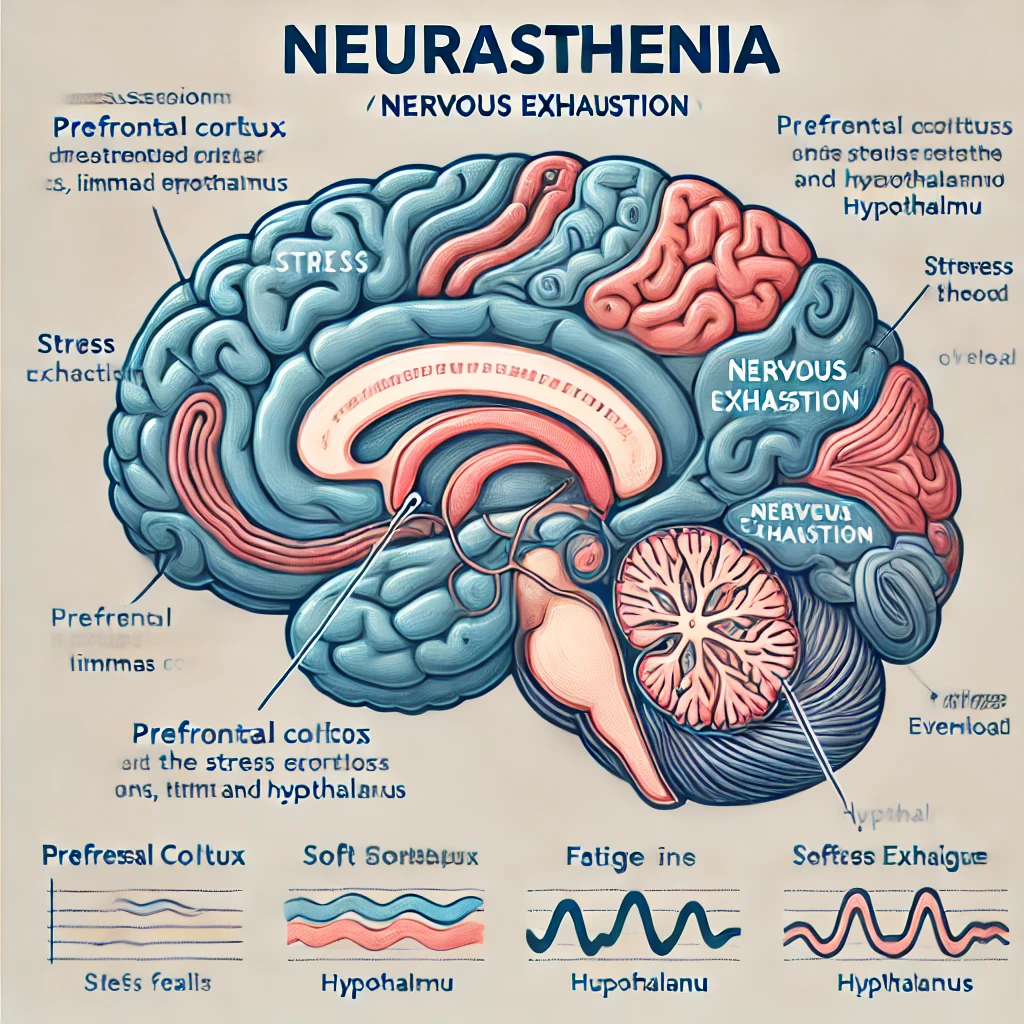 **신경쇠약(Neurasthenia)**은 지속적인 신체적·정신적 피로감, 불안, 집중력 저하, 수면 장애 등을 특징으로 하는
