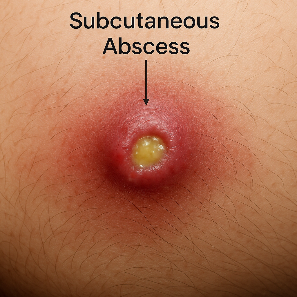 피하농양은 피부 아래 피하조직(subcutaneous tissue)에 고름이 고여 염증성 덩어리를 형성하는 급성 감염 질환입니다.